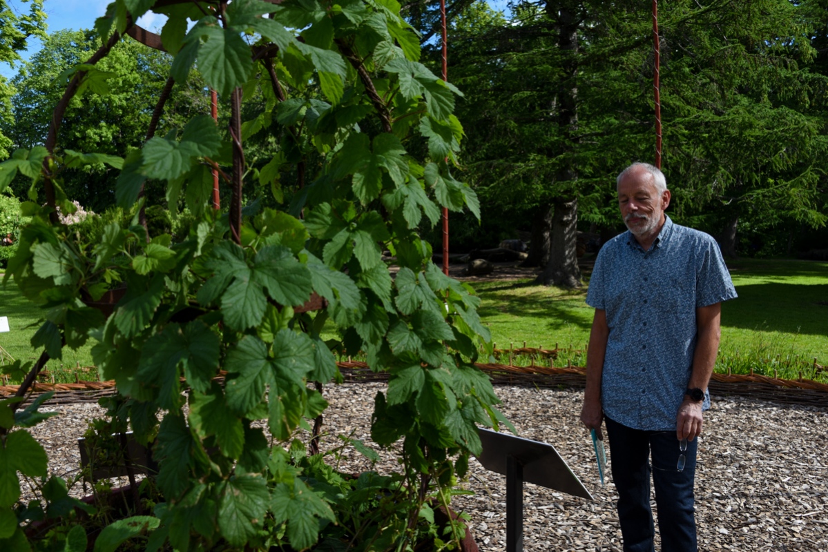 Det var inte så många besökare när Beernews var på Botaniska på förmiddagen, men en av dem var Richard Berglund. Han funderar på att börja brygga öl själv och då kanske få humle från grannen som odlar tre olika sorter i trädgården.