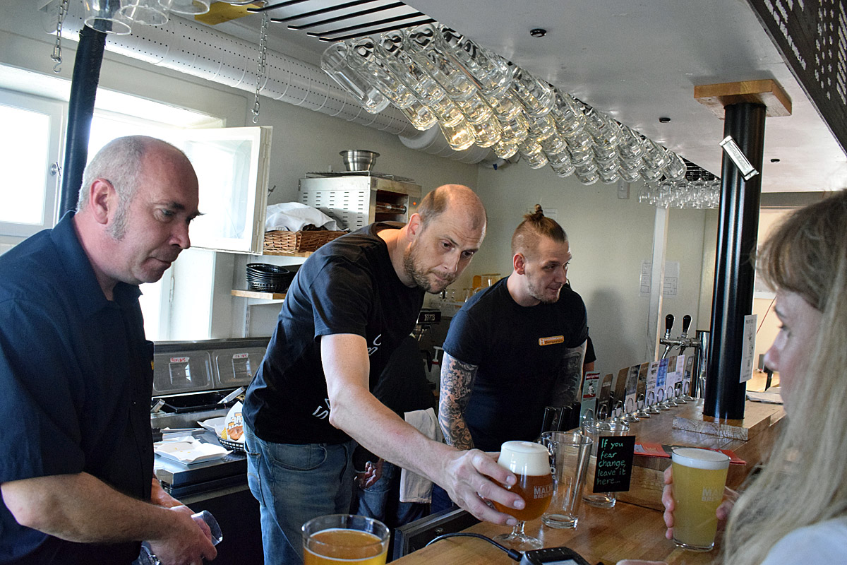 På Hamnmästaren var det Sad Robot som hade tap take vore. Åtta olika öl fanns att prova och bryggaren Ingemar Jansson fanns på plats. Det fyllde på bra med folk och solen på uteserveringen lockade förstås lite extra en sådan här dag.