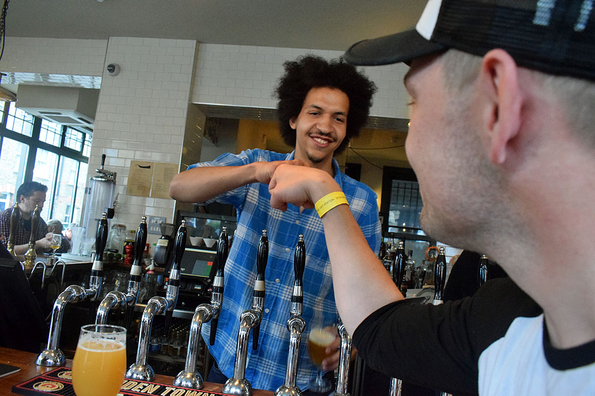Han cirkulerade runt i baren och fick prata öl både här och där. Inte minst med en hel del branschkollegor som sökt sig till stadsdelen Bethnal Green och puben Kings Arms. Representanter från bland annat Buxton, Kernel och amerikanska Other Half fanns på plats.
