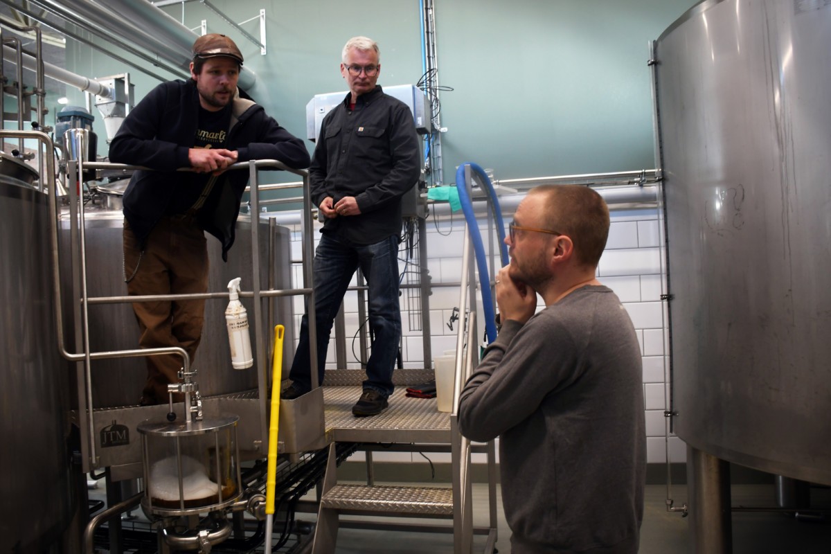 Hampus Olofsson och Håkan Nilsson diskuterade öl och bryggning med Andreas Görts.