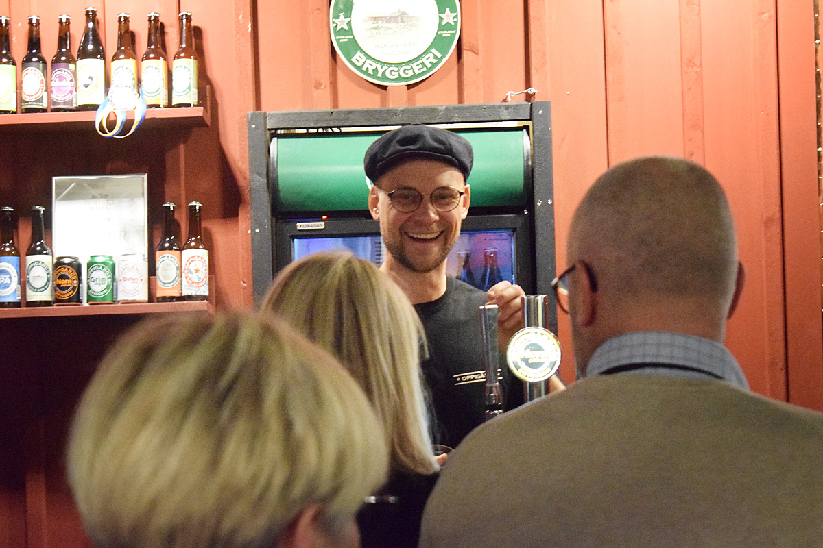 Anders Wikén på Oppigårds var på glatt humör när många ville prova ölen.