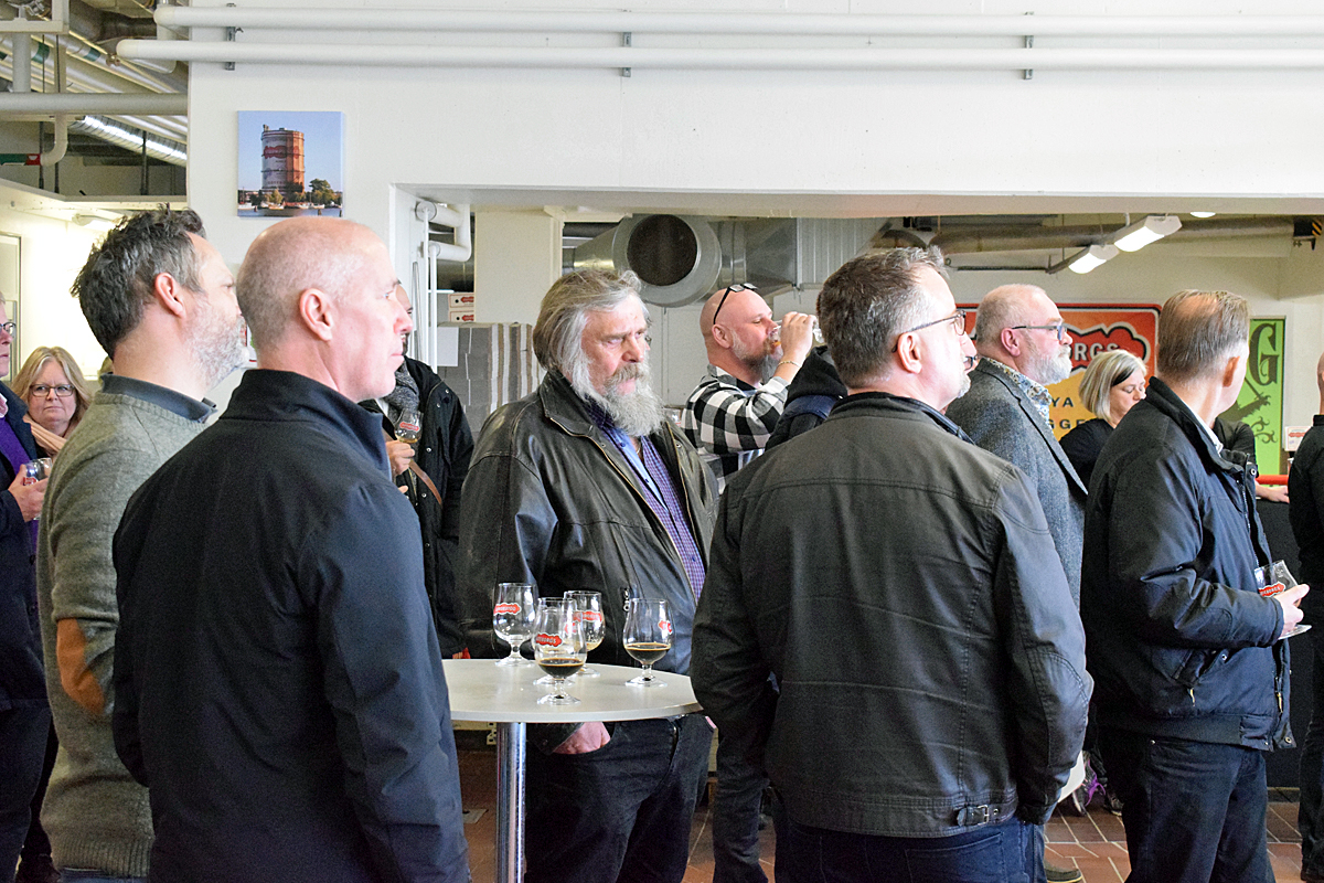 Hos Göteborgs Nya väntade starkpilsner och dessutom en premiär för en stout, och medan ölen smakades berättade Marc Rothausen om byggnadens historia med Pripps och hur det nu blivit Göteborgs Nya Bryggeri som tagit över lokalerna.