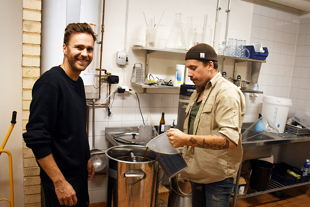 Frans Schubert och Stefan Persson bryggde öl under Beernews besök.