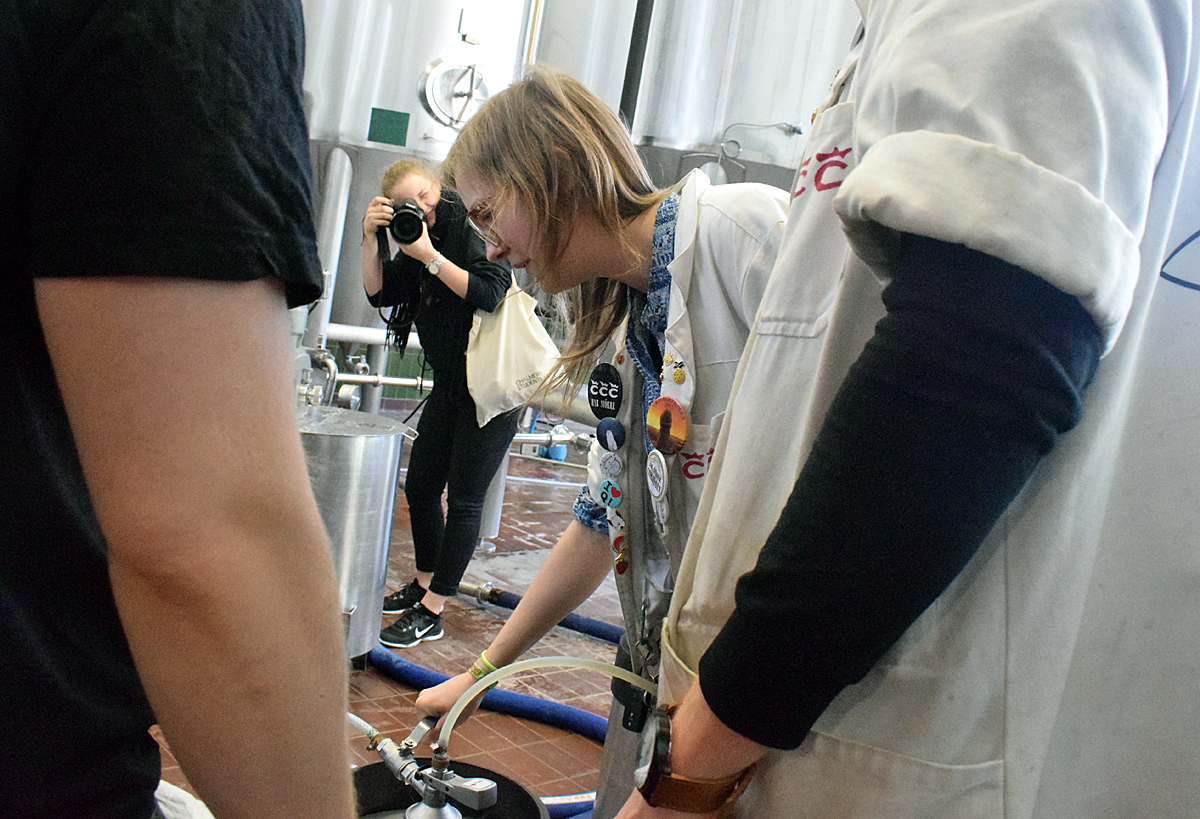 Det var fler som ville fota när Hanna Jörlén satte i gång med att få specialölet på fat.