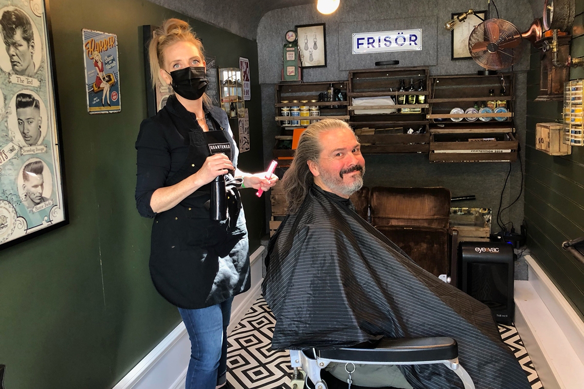 The Dappled Dachshund gentlemen's Barbershop tog tag i att snygga till några bryggares eftersatta Corona-kalufser och trimmade yviga skägg.
