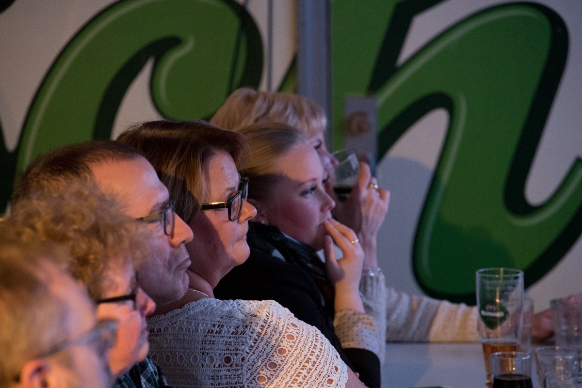 Hakets källare var fullsatt och några fick vända i dörren. Men de som väl kom in fick en föreläsning som inte bara gav ökad kunskap om porter och stout utan också ett och annat skratt.