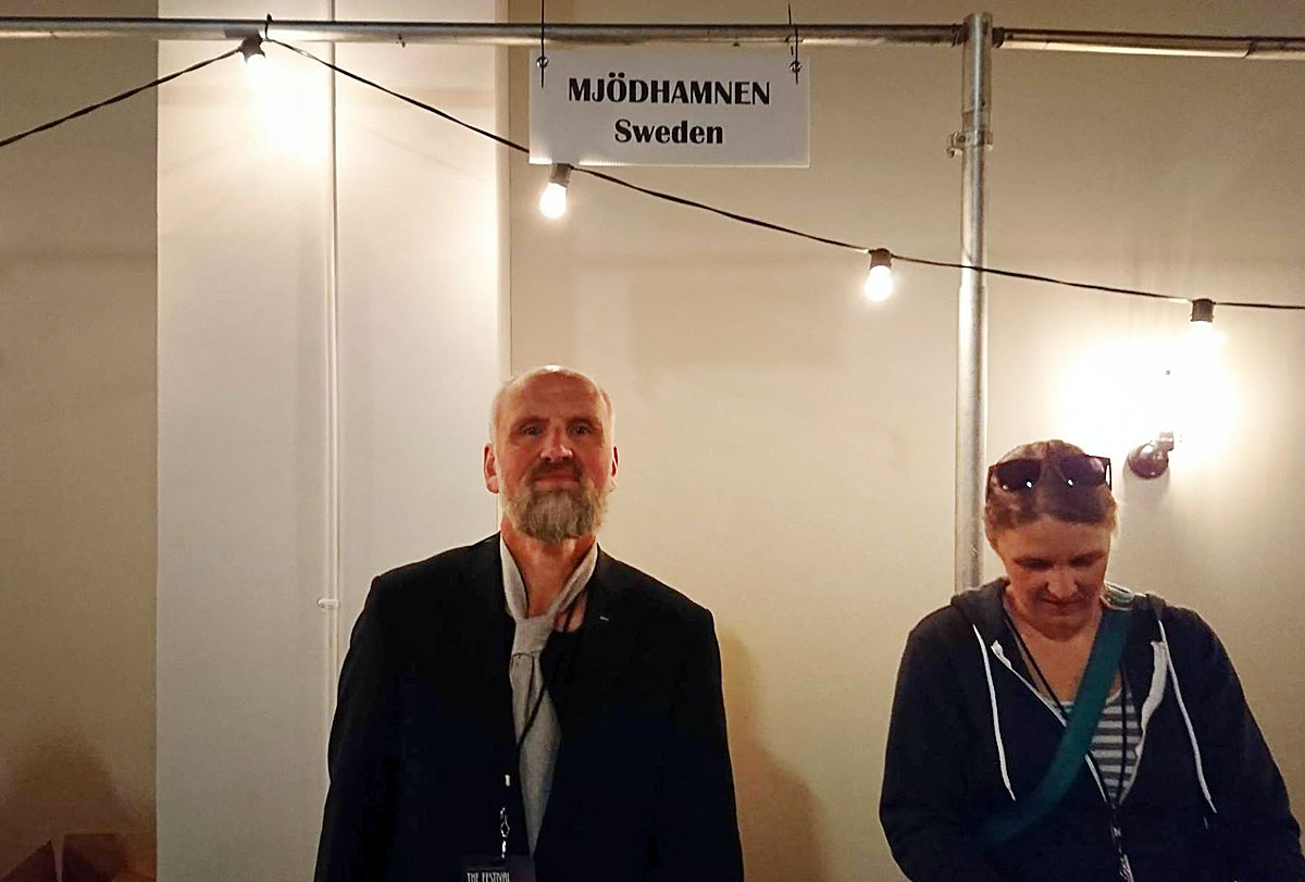 Thomas Lundevi serverade öl för Mjödhamnen/Grimfrost på helgens festival.