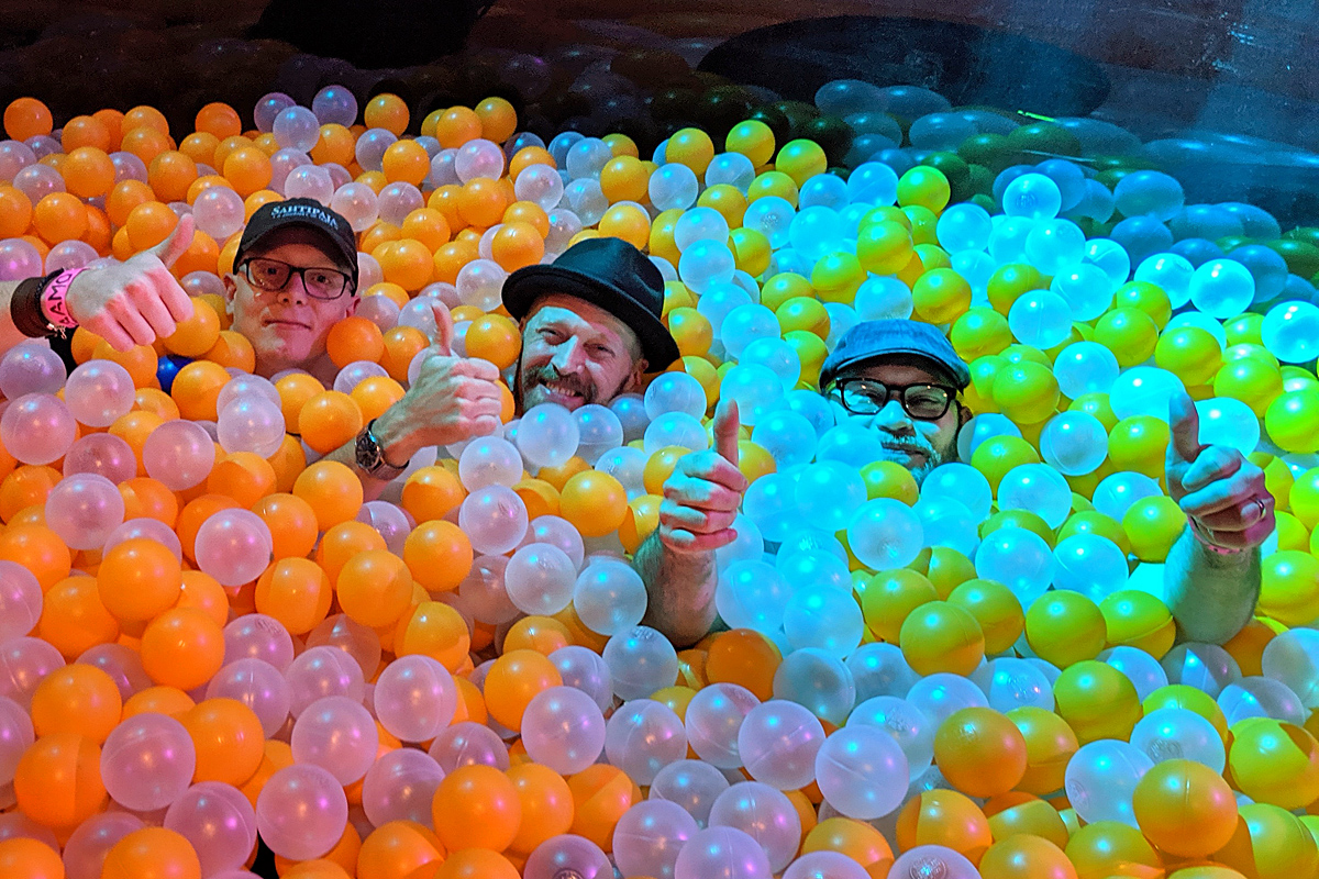 Ett bollhav var av intresse för såväl bryggare som besökare. Här är det Johannes Krjukoff, Anders Granberg och Fredrik Ek som leker loss i samband med ölfestivalen.