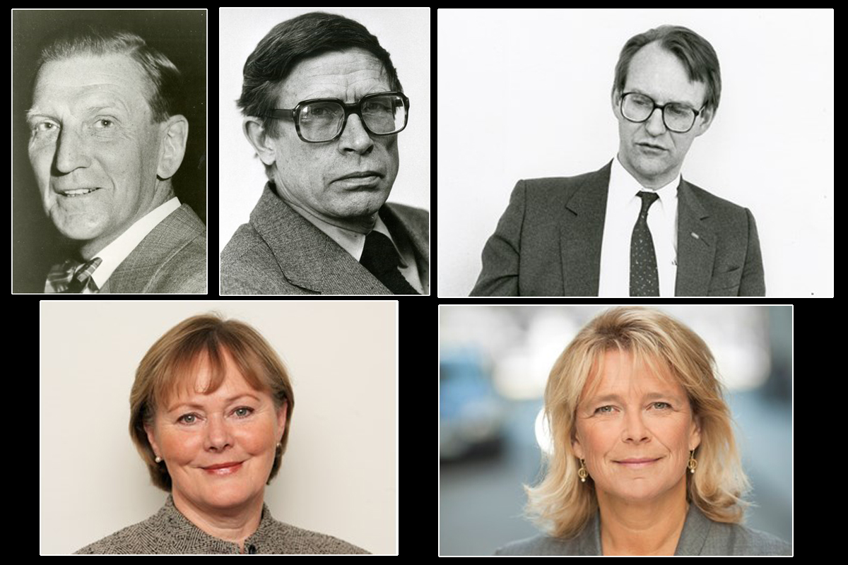 Fem personer har haft vd-positionen på Systembolaget sedan starten. De fem är Harry Älmeby (1954-1966), RuneHermansson (1967-1981), Gabriel Romanus (1982-1999), Anitra Steen (1999-2009) samt Magdalena Gerger (2009-) (Foto: Systembolagets arkiv)