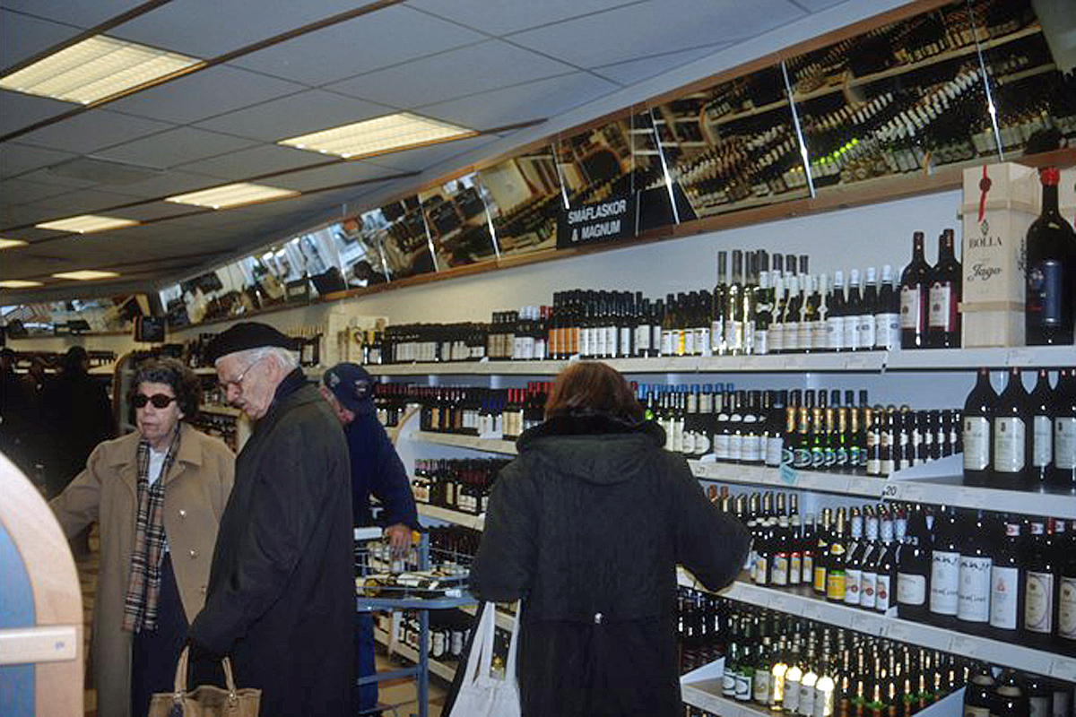 1991 fick butiken i Filipstad självbetjäning och det ormades med bussresor för att människor skulle få uppleva nymodigheten, (Foto: Systembolagets arkiv)