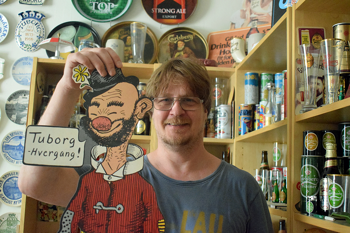Vi träffas i hans lägenhet i Göteborg och det är ingen tvekan om att ölintresset är stort. Han är delägare i Majornas bryggeri och gillar öl i allmänhet. Men det är när det gäller ölprylar som det blir riktigt nördigt. Två av de tre rummen är helt fyllda med skyltar, flaskor, burkar, brickor och allt du kan tänka dig som är ölrelaterat.