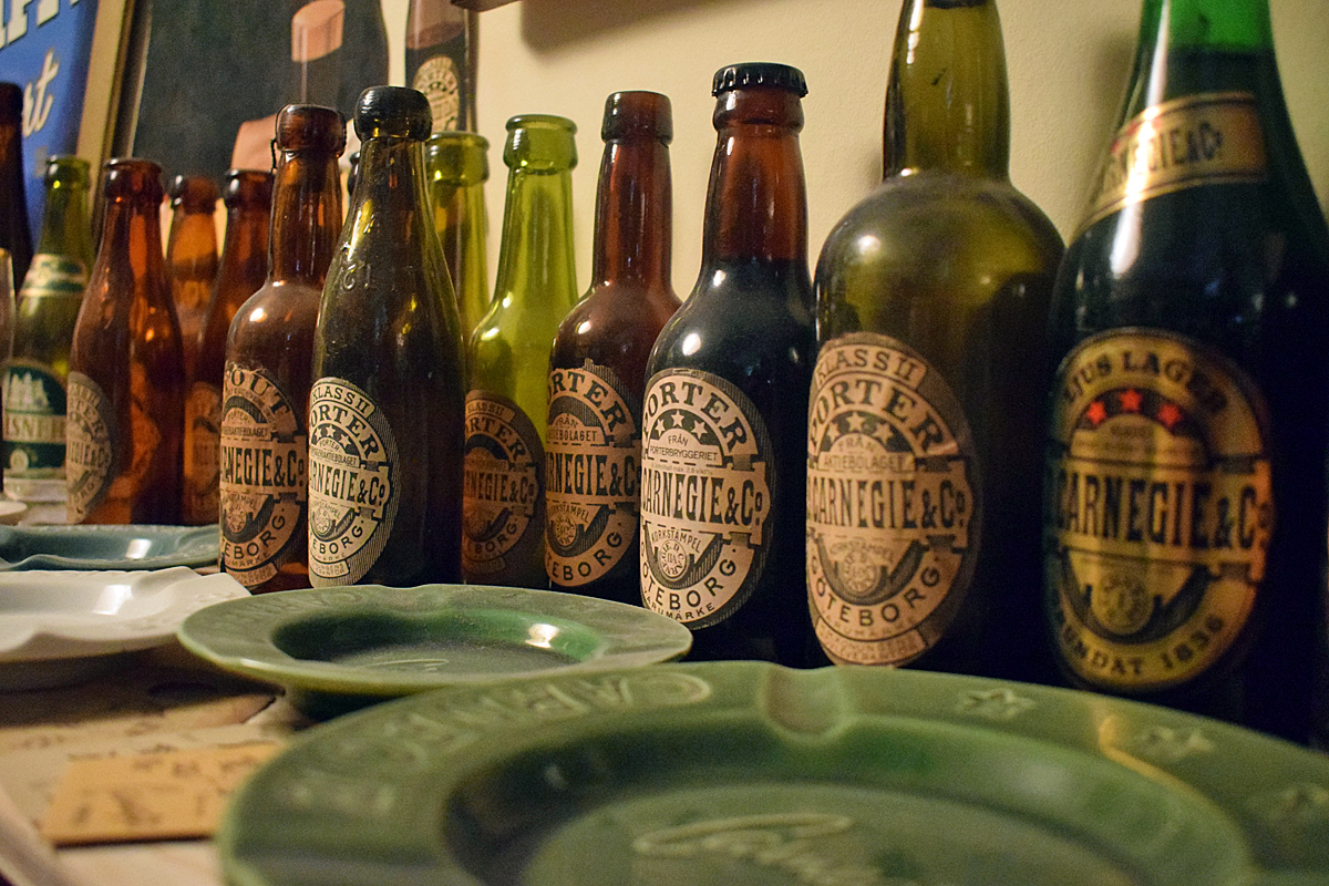 De två rummen har en uppdelning med danska prylar i ett rum och svenska i det andra. Att titta runt där blir en resa i tiden på flera sätt,. Många av bryggerierna i samlingen bryggde sina sista öl för många år sedan, och förr i tiden var heller inte alltid reklamen sådan att den passerat de granskande ögon som finns i dag.