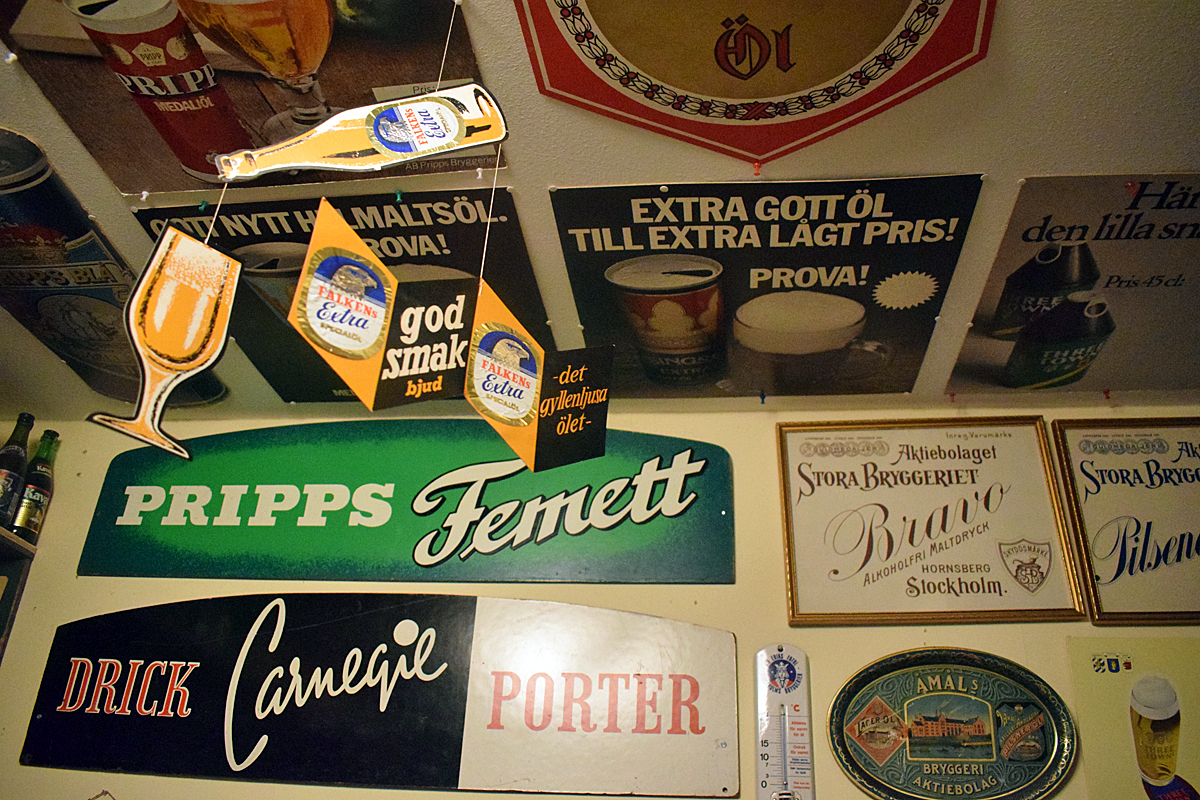 Vi träffas i hans lägenhet i Göteborg och det är ingen tvekan om att ölintresset är stort. Han är delägare i Majornas bryggeri och gillar öl i allmänhet. Men det är när det gäller ölprylar som det blir riktigt nördigt. Två av de tre rummen är helt fyllda med skyltar, flaskor, burkar, brickor och allt du kan tänka dig som är ölrelaterat.