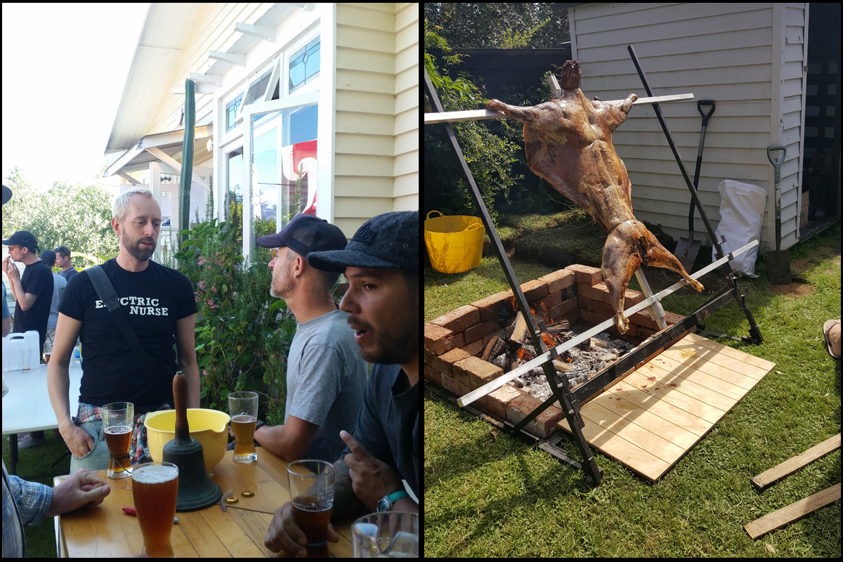 Dagen därpå var det dags för en liten ölfestival i regi av Carlos de Barra från Outlier Cartel. Det blev ett gemytligt party i en vanlig trädgård med ett helstekt lamm över öppen eld och många goda öl provades. När vi ändå var i Auckland passade vi på att besöka den högt Ratebeer-rankade bryggeripuben Brothers Beer. Dagen efter bryggdes det sedan en collab med Carlos hos Colab Brewing avsedd för en ölfestival här i Nya Zeeland. Tyvärr genomfördes den precis efter att vi åkt hem så vi missade releasen. Ölen är en Dubbel bryggd med hallon och lakrits.