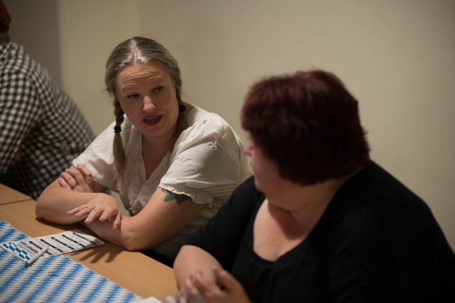Cecilia Nilsson och Annica Lindström diskuterade och vi gissar att det handlade om öl. (Foto: Jonas Hammar)