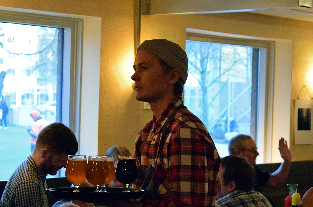 Carl Bylund hade fullt upp med att servera öl på Barleys.
