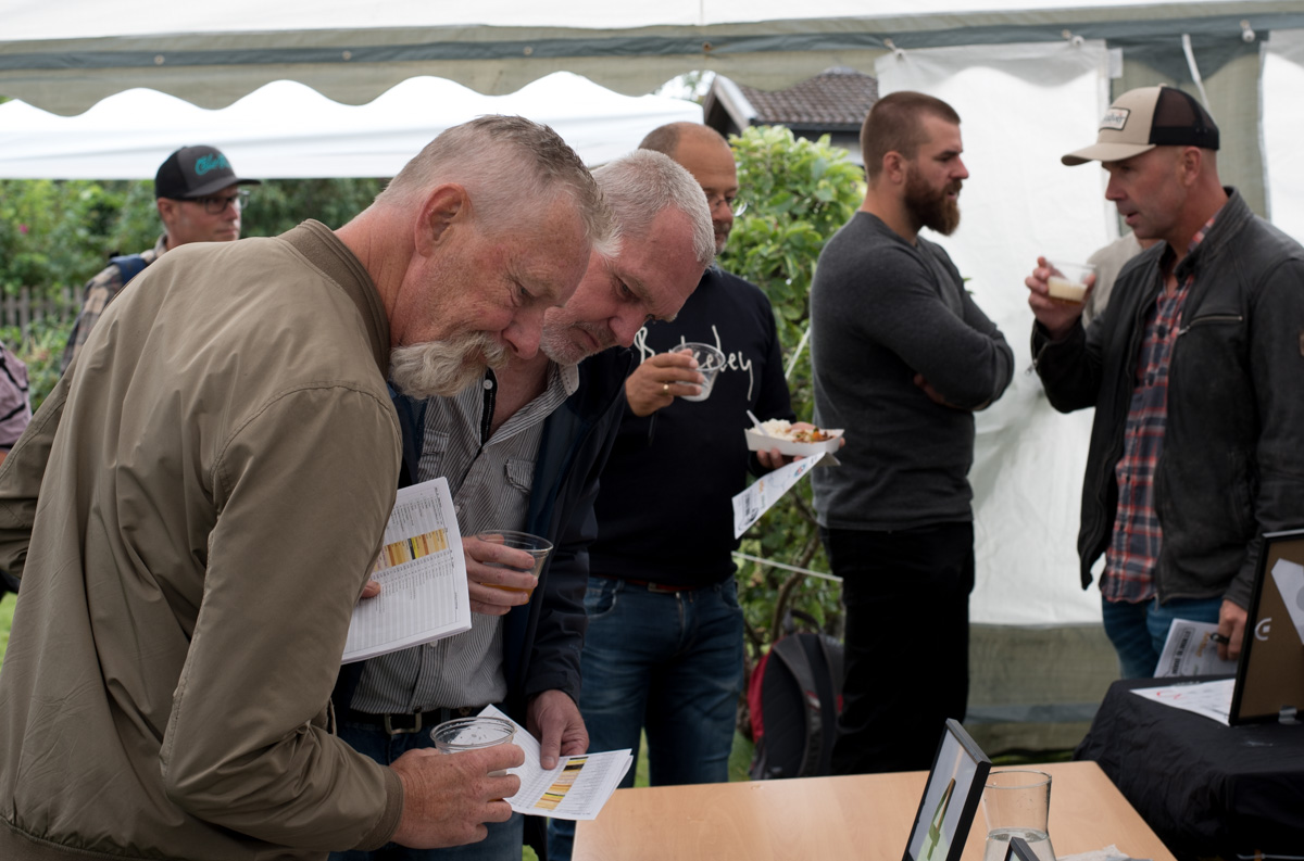 Upplägget var att fyra grupper av besökare slussades mellan fyra trädgårdar. Sen fick de 45 minuter på sig att smaka öl innan det var dags för en 15 minuters promenad till nästa trädgård och nya öl.