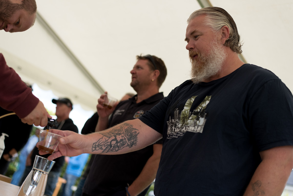 Upplägget var att fyra grupper av besökare slussades mellan fyra trädgårdar. Sen fick de 45 minuter på sig att smaka öl innan det var dags för en 15 minuters promenad till nästa trädgård och nya öl.