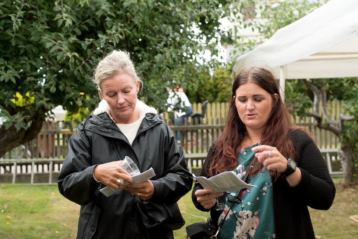 Upplägget var att fyra grupper av besökare slussades mellan fyra trädgårdar. Sen fick de 45 minuter på sig att smaka öl innan det var dags för en 15 minuters promenad till nästa trädgård och nya öl.