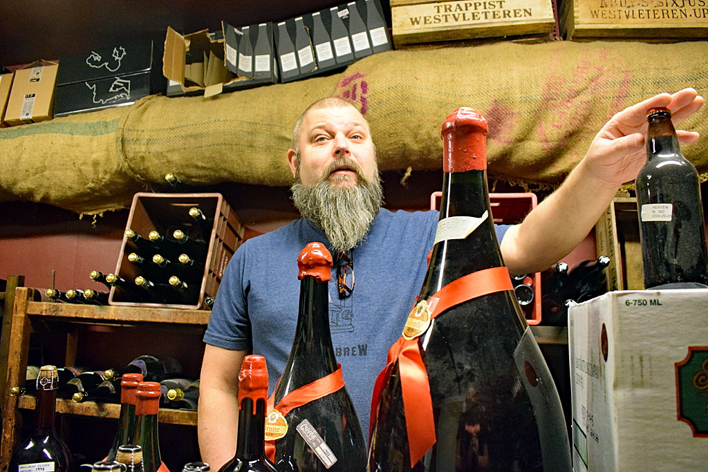 En rundvandring i källaren är en högtidsstund för den som gillar öl. Utmed väggarna ligger öl som är både ovanlig och lagrad under lång tid. Allt är strukturerat för att det ska vara enkelt att hitta.