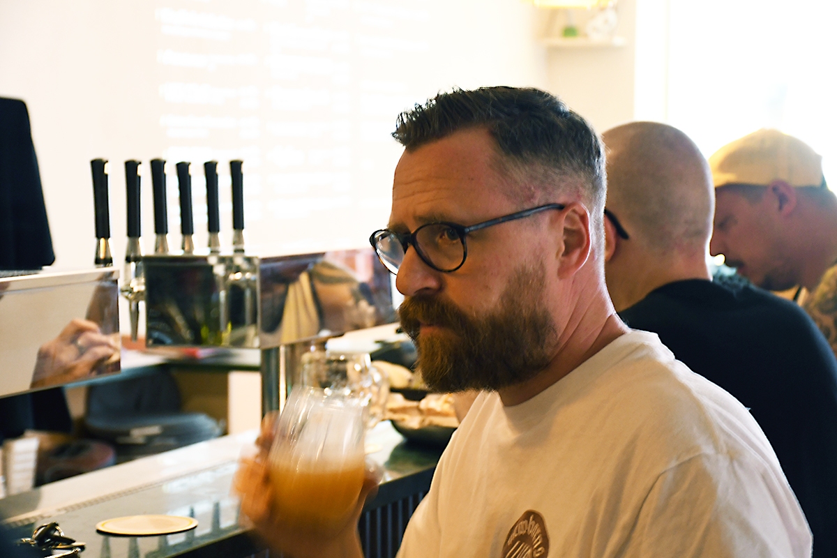 För Johan Eklund blev det en speciell dag, då han fick sina egna öl serverade av sin egen son Elmer, som jobbar i baren på Stigbergets Fot.