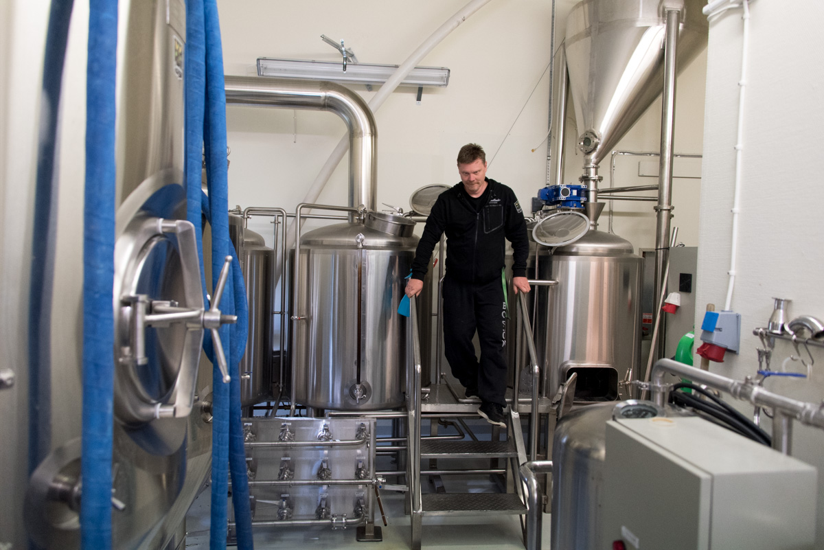 – Vi är det stora bryggeriet här och brygger mellan 500 och 1 000 liter i månaden, säger Tony Tingström, som jobbar heltid med bryggeriet.