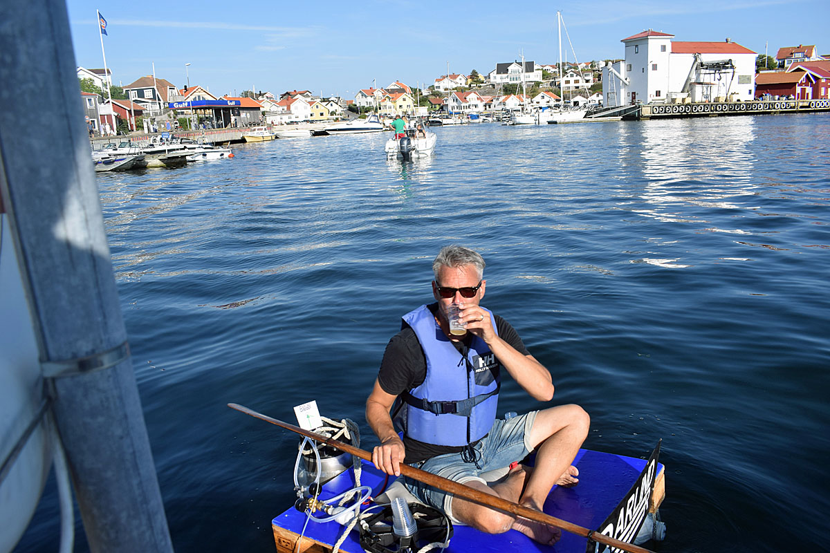 – Vad gör du här, var kanske den vanligaste frågan när han dök upp på sin lilla flotte bland segel- och motorbåtar, men efter en förklaring ville alla smaka på ölet.
