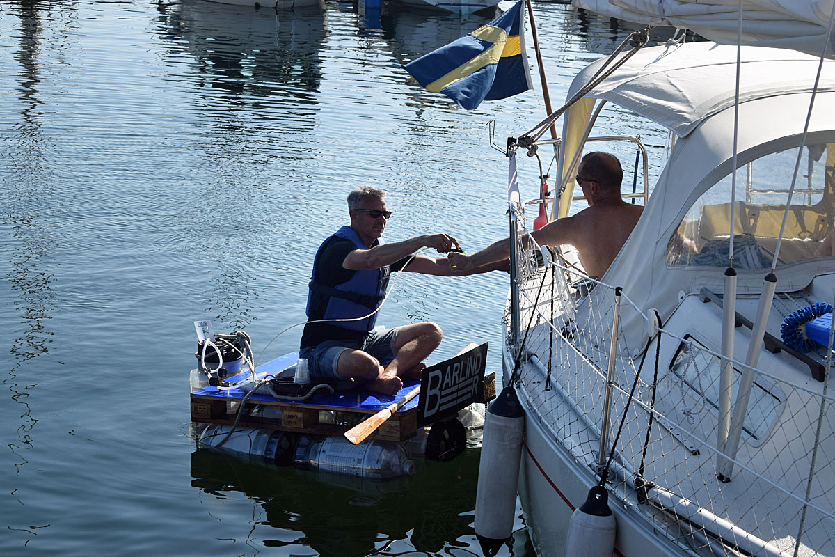 – Vad gör du här, var kanske den vanligaste frågan när han dök upp på sin lilla flotte bland segel- och motorbåtar, men efter en förklaring ville alla smaka på ölet.