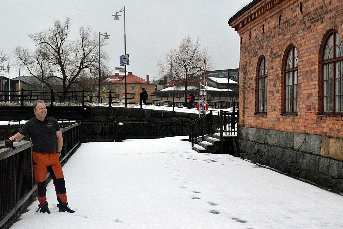 Bryggaren Sven Eklund hyr en gammal brandstation i tegel mitt i centrala Falun och har till det en stor uteservering på en brygga vid Faluån.