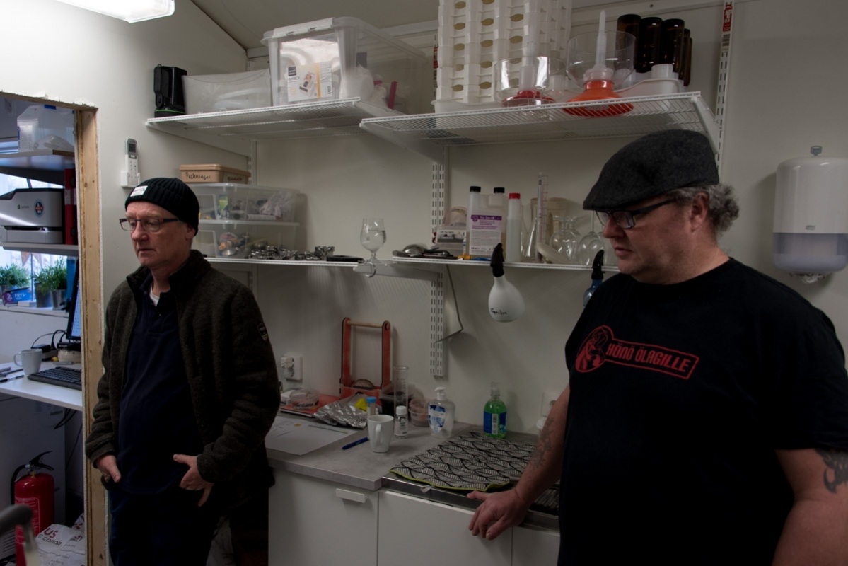 Thomas Alm och Nicklas Lathvenis väntar på att lakningen ska bli klar.