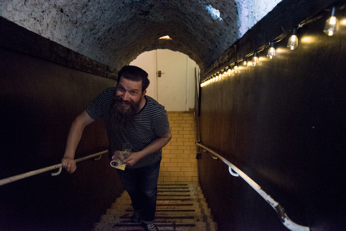 Patrik Andersson lämnar källarvåningen för att testa övervåningens brygder.