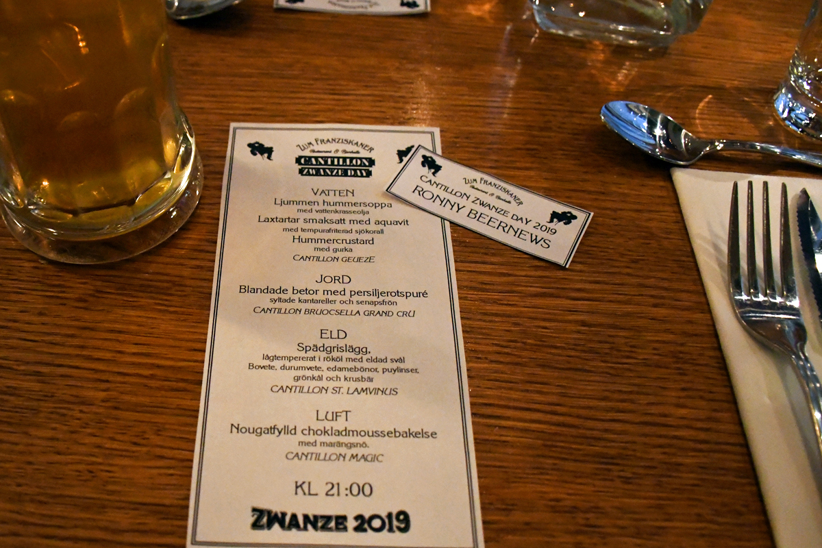 Ölen som serverades till middagen var Cantillon Gueuze, Cantillon Bruoscella Grand Cru, Cantillon St Lamvinus, Cantillon Magic Lambic samt då Zwanze 2019. Här ovan ser du bilder från festen.
